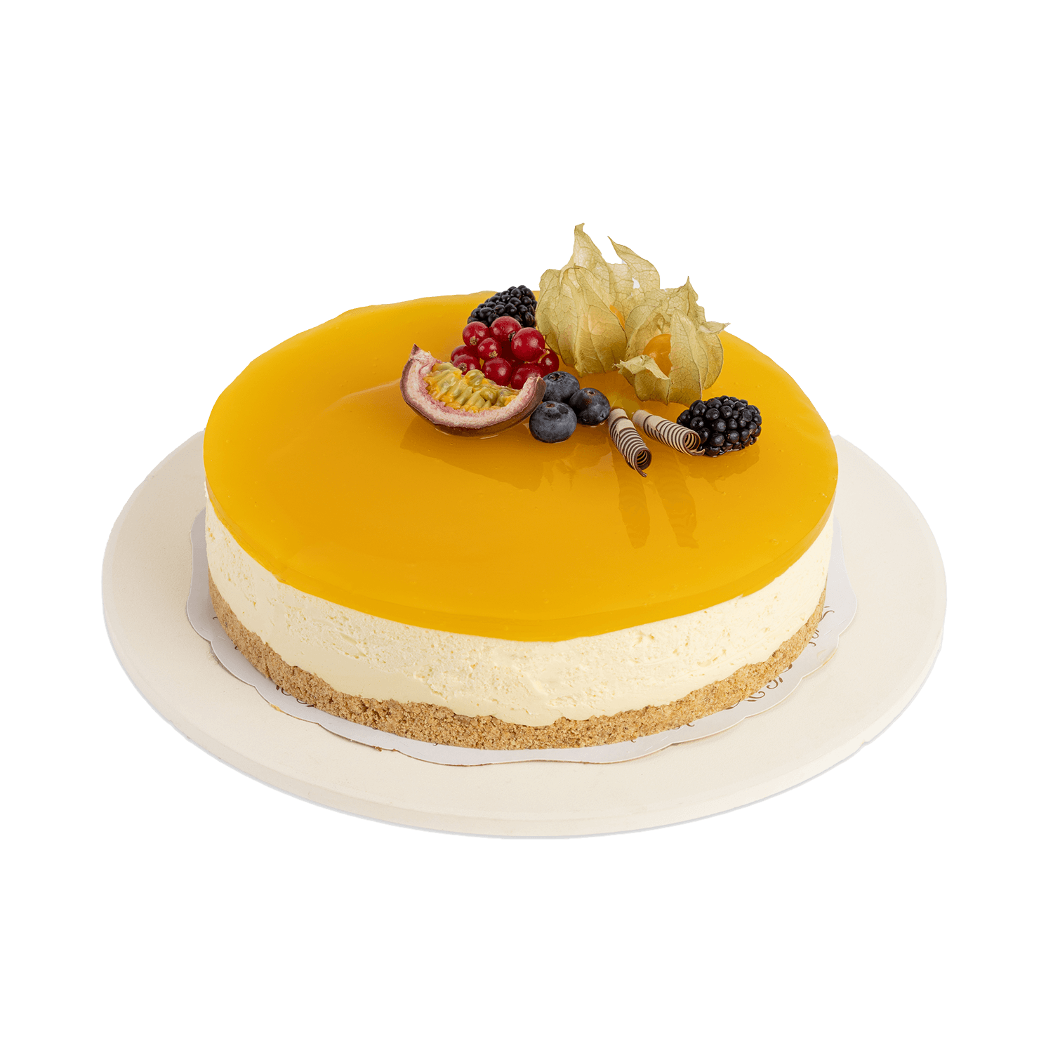 Raikas ja täyteläinen juustokakku. Rapealle pohjalle täytetty tuorejuustomoussea ja pinnalle mangohyytelöä. Tämä kakku sopii hyvin juhlapöydälle ja oivallinen makupari kuplivan juoman kanssa.